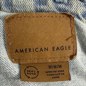 American Eagle Thrashed Light Blue Distressed Denim Jacket