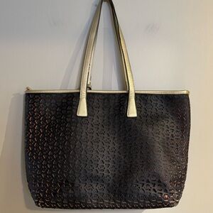 Michael Kors| Black & Gold “Jet Set” Perforated Monogram Large Tote Carryall Bag