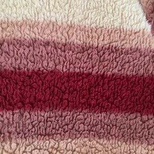Keywords: Ashley by 26 International, sherpa jacket, striped fleece jacket, pink and cream outerwear, women’s XL, cozy jacket, faux sherpa, casual winter jacket, soft fleece coat, oversized fit, cold weather style, trendy outerwear, pastel jacket, zip up sherpa.