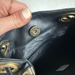 Y2K Patchwork Shoulder Bag Metallic Grommet Bucket Tote Purse Glam City Chic