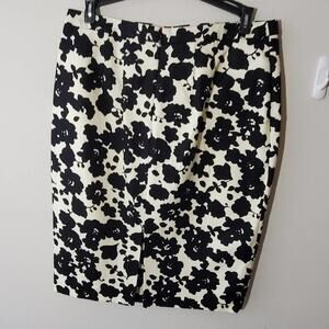 LOFT floral black and white Career pencil skirt size 6 New