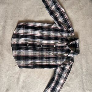 Stylish plaid shirt for boys. Features navy, white, and red pattern. Perfect for casual wear or dress up. Check out my other boys listings