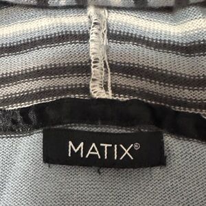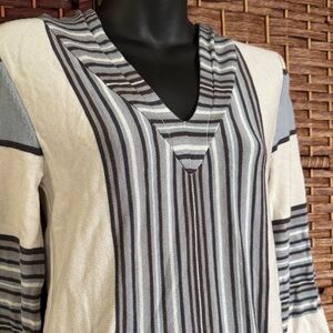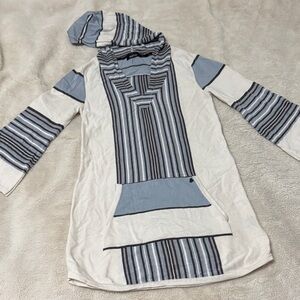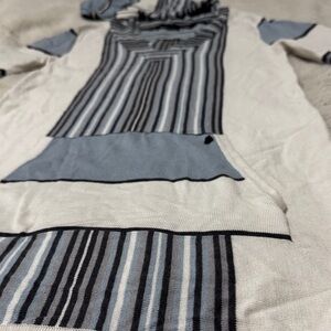 Matix Striped V-Neck Hooded Tunic/ Poncho - White & Gray Sweater Dress - S