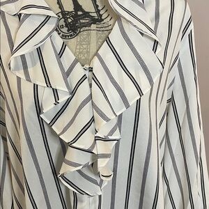Karl Lagerfeld Paris White & Black Striped Ruffle Blouse – NWT, XL
