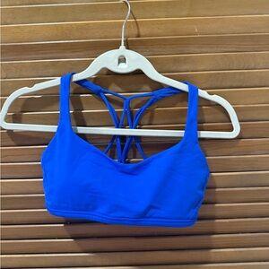 Vibrant blue sports bra with strappy back design. Perfect for workouts.