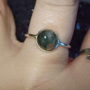 Dainty Moss Agate Silver Ring