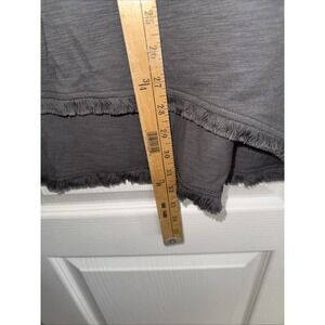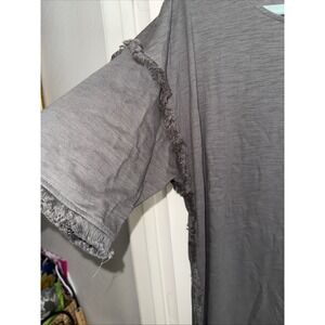 This shirt is super soft has a high low him never been worn. The color is like an army green/dark gray hard detail depends on what light you're in.