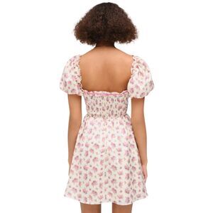 Step into a fairytale with the For Love & Lemons Etienne Mini Dress. This romantic piece embodies the "Coquette" aesthetic with a vintage-inspired floral print, structured corset-style bodice, and delicate ribbon tie accents. Features dreamy puff sleeves and a playful ruffled hem that creates a flattering, feminine silhouette. Perfect for date nights, garden parties, or festival season.