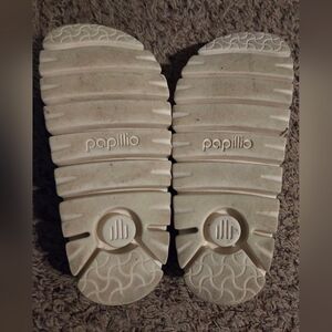 EUC Birkenstock Papillio Boston Chunky in a light sage green suede with off white soles. Has approximately 1 inch platform. Light wear to the footbed but still in excellent condition.