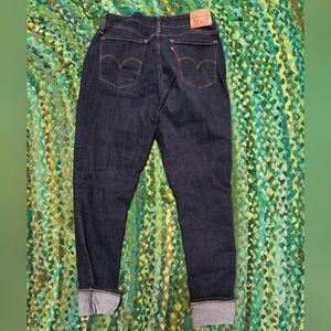 Levi Strauss stylish dark blue denim jeans with rolled cuffs. Features classic back pockets.