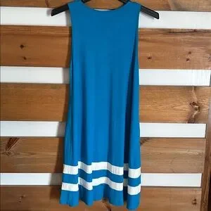 Beeson River Vibrant Blue Sleeveless Dress White Stripe Accents Size Small