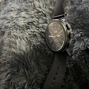Matte black Vestal watch with chronograph features. Vestal 10 atm-bar waterproof surf watch. Great condition, just needs a new battery. Thanks