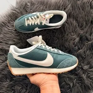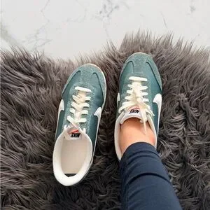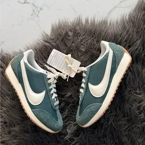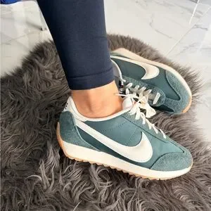 Stylish Nike sneakers in dark green with white accents. Comfortable and trendy for any occasion.