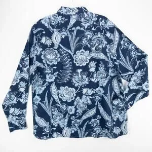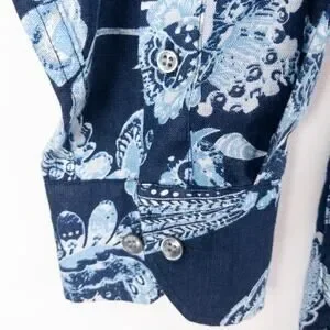 Murano Baird McNutt Linen Floral Shirt Men's XL Blue White Flowers Long Sleeve