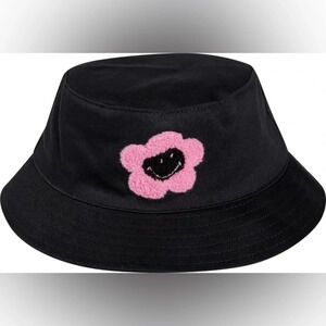 🍄HOST PICK🍄Smiley x By Samii Ryan Caution Smiles Cotton Bucket Hat, Blk/Pnk, NWT