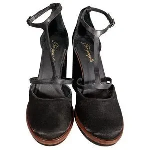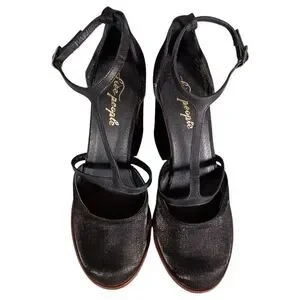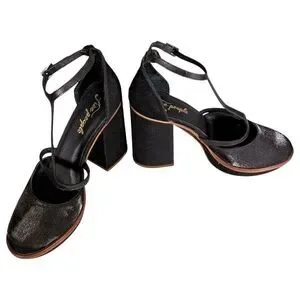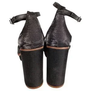 Free People Sandals 9.5 Womens Black Textile Platform Block Ultra High Buckle