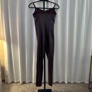 Aerie Chocolate Brown Faux Leather Jumpsuit