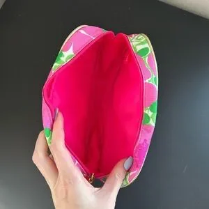Lilly Pulitzer for Estée Lauder Pink and Green Floral Cosmetic Makeup Bag
