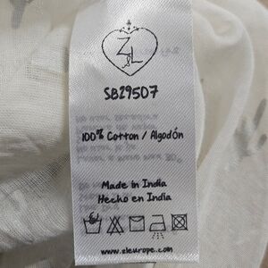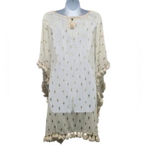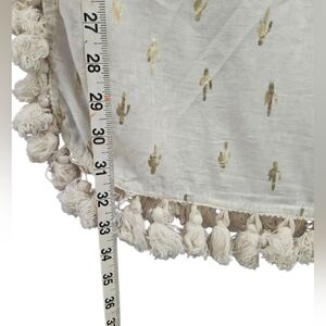 Z&L Gold Foil Cactus Print Tassel Boho Cover Up Poncho Medium Cream 100% Cotton
