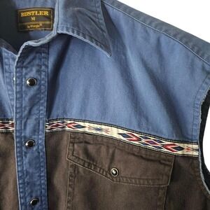 Rustler Wrangler Western Snap Sleeveless Shirt Sz M Southwestern Trim
