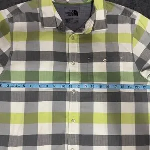 The North Face Men's Casual Plaid Shirt - Gray, White, Lime
