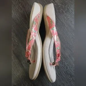 Vionic Bella II sandals Papaya Tropical floral Bow Size 7