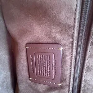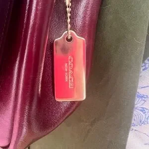 Stylish Coach shoulder bag in dark red. Features elegant gold chain strap. Ideal for any occasion. New without tags.