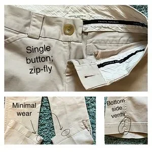 Pants are in great condition; see pics for few minor flaws (tiny pen mark - probably will easily come out - lower right leg & very minor wear to bottoms; bit of wear to back belt loop area).