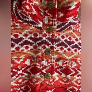 Stay cozy and stylish with this vibrant red patterned sweater. Perfect for any casual outing.