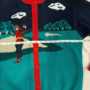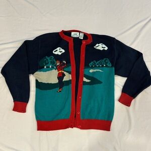 Vintage style tabi international golf cardigan in what appears to be a women’s size m. There is no size tag or care tag attached. Good, used condition with some light pilling and a mark on the sleeve. As shown in the photos. #vintage #golf #vintagecardigan #cottagecore