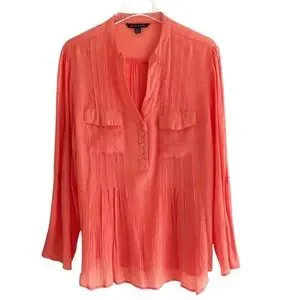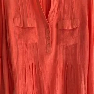 Zac and Rachel Flowy Blouse Roll Tab Sleeves Orange XL