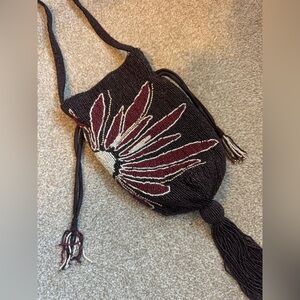 • Brown Beaded Bucket Bag