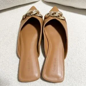 NEW Open Edit Kristina Pointed Toe Mule Flat Pastel camel Tan Mocha Sz 9.5