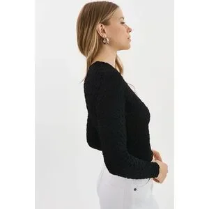 LAMARQUE • Nandra Top black textured tee long sleeve scoop neck cropped tight