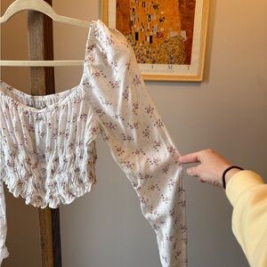 Urban Outfitters white floral long sleeve top - the cutest cottagecore / dainty top with smocking around the waist - 100% rayon