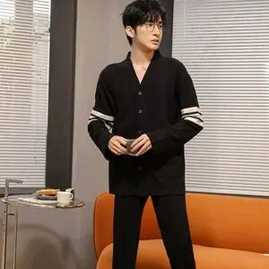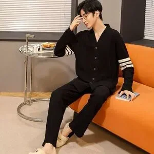 Elevate your sleepwear game with this classic pajama set, perfect for men who prioritize comfort and style. The set includes a button-down top and long pants, both made of high-quality cotton material, in a timeless black color. The theme of the set is classic, making it a perfect addition to any sleepwear collection.