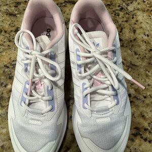 Chic Adidas sneakers with a white and light purple design. Stylish and comfortable for daily wear.