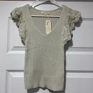 Elegant V-neck sweater with charming ruffle sleeves. Soft and stylish for any occasion.