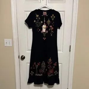 Johnny Was Black Dress with Multicolor Floral Embroidery size small NWT