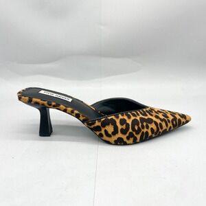 Steve Madden Womens 10M Mod Leopard Calf Hair Kitten Heel Mule Pointed Toe Slide