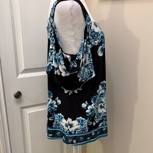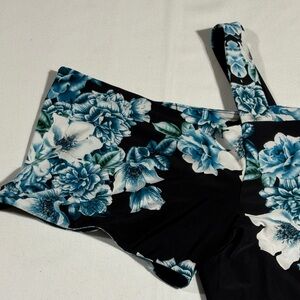 Floral Cold Shoulder Top - Black and Blue Large EUC