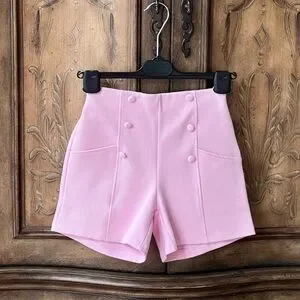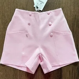 New with tags! Chic and stylish Zara Girls high-waisted shorts in a gorgeous power pink shade. Beautiful structured fabric. Size 9 but it runs large and it will fit size 10 and 11/12. Elastic back, decorative front button accents and functional pockets.