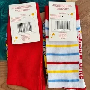 Fun and colorful socks featuring playful characters. Perfect for adding joy to any outfit.