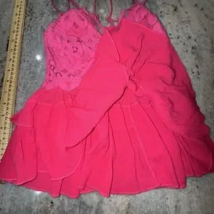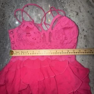 Zenana Tank Top Medium Hot Pink Cami Baby Doll Lace Y2K Cropped