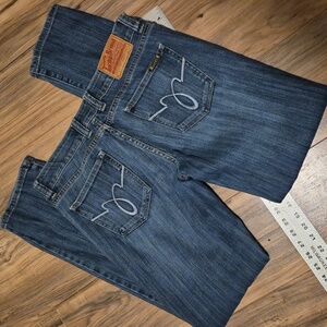 Stylish straight leg jeans by Lucky Brand. Classic blue hue. Perfect for versatile wear.