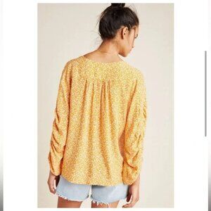Anthropologie Orange Floral Button-Up Blouse
