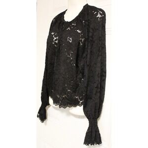 Free People Black Lace Blouse Romantic Sheer Scalloped Hem Oversized Size Small