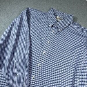 Gold Label Roundtree & Yorke Button Down Mens 17.5 33 Blue Gingham Non-Iron