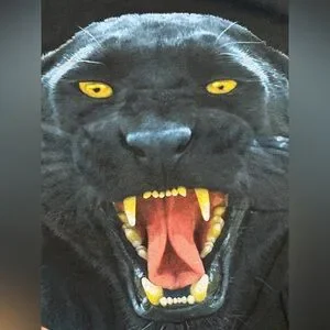 Anvil Human-i-Tees Vintage Growling Black Panther Cotton Short Sleeve Tee Shirt T-Shirt Top. Size Large, additional measurements in the photos. 100% Cotton. Graphic big cat, leopard, jaguar, animal top.