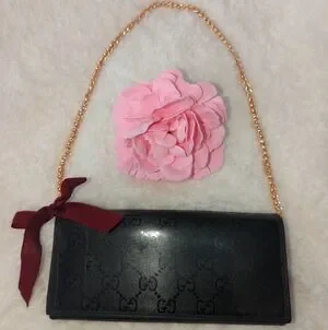 Elegant Gucci clutch bag in classic black. Perfect for any occasion. some wear shown in photos and video